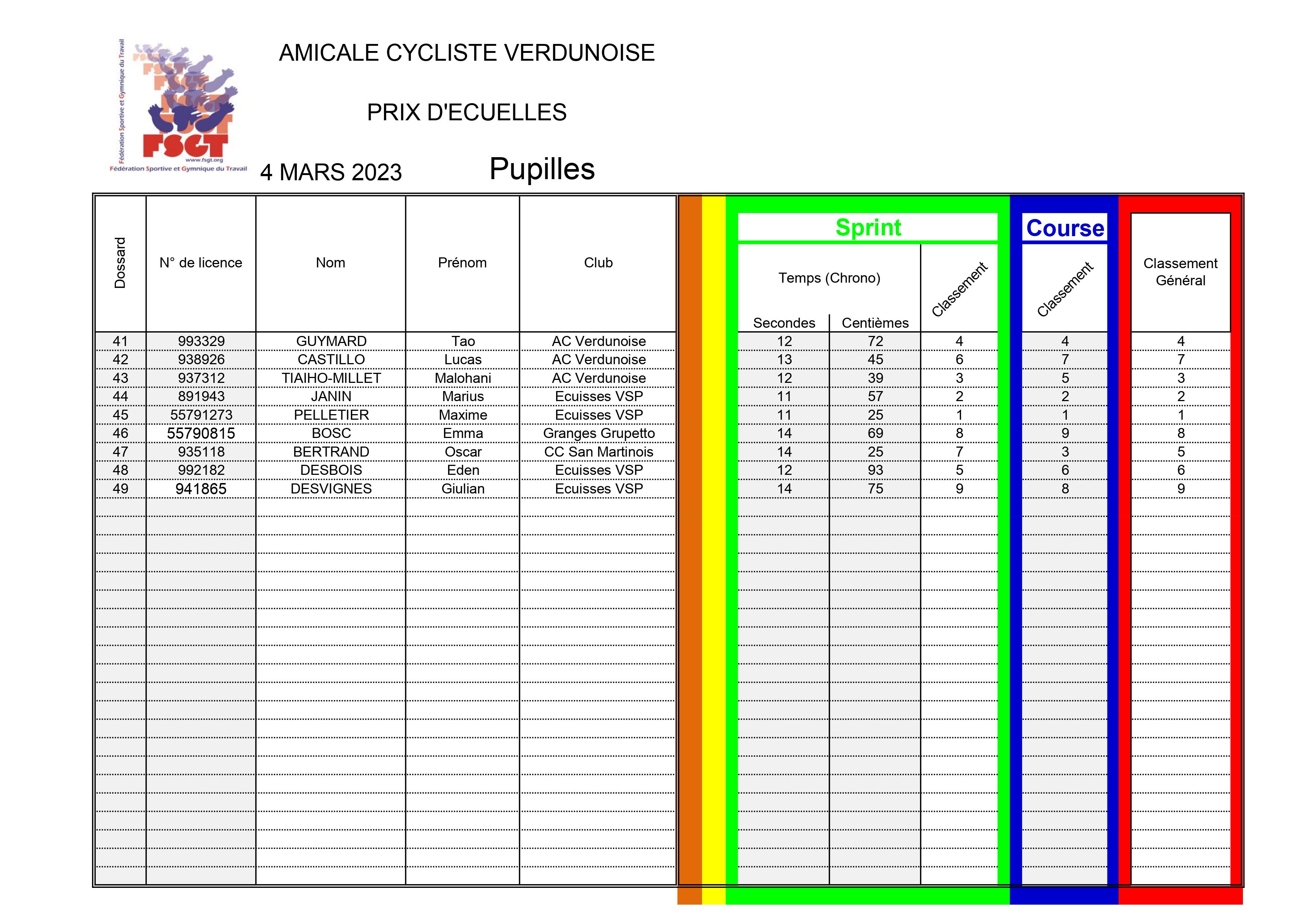 En poussin, Timéo Devaux Fleury termine 4ème sur 7. En pupille, nouvelle victoire pour Léane Devaux Fleury, Sully Deveyer et Lazarine Drillien terminant respectivement 3ème et 4ème, sur 6 enfants engagés. En benjamin, Lucien Drillien, pour sa dernière course en école de vélo, termine 6ème sur 8 enfants au départ.