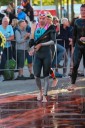 Mais il y a de l’enjeux, la course étant support des championnats nationaux de triathlon longue distance, le début de course est âpre pour se placer dans les premières places et pour ne pas se faire distancer des meilleurs dans la course au titre. Après avoir pris quelques coups de pieds et de poings, je décide que ce n’est pas ma course et je ralentis mon allure pour les laisser passer. Pas la peine de prendre des risques, c’est seulement le début de l’aventure et je ne veux pas hypothéquer mes chances de réussite à cause d’un mauvais coup dans l’eau. Je le rappelle, mon objectif est d’aller au bout et non pas de faire un temps canon donc à quoi bon prendre des risques pour gagner cinq ou dix minutes.