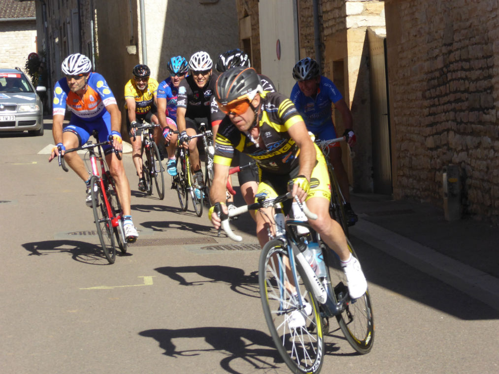 Comme à son habitude, le départ est très rapide, tout le monde est frais et cherche à se placer dans la bonne échappée ou marquer des points pour le maillot vert avec 3 MS répertoriés sur les 25 premiers kilomètres. Une échappée composée de 4 hommes prend le large. Derrière, les difficultés s’enchaînent les unes après les autres (Mary, Saint-Martin en Salencey, Sailly). Les fuyards collaborent bien et comptent une avance supérieure à deux minutes à Chapaize. Les montées de Brancion et du col de Beaufer se font à un rythme élevé qui provoque des cassures au sein du peloton. A Chardonnay, l’échappée ne compte plus que 25 secondes. C’est à ce moment là que le leader de la course, Baptiste Chardon, décide d’attaquer pour sauver son maillot. La pancarte de Lugny franchit, il reste aux coureurs la montée de St Pierre avec ses passages à 15%. Etant bien placé, j’aborde la dernière difficulté en tête de peloton pour aller chercher la 5ème place de l’étape à 3 secondes du dernier rescapé et 17 secondes du maillot jaune. Ce classement me permet de m’emparer du maillot de meilleur Saône et Loirien.