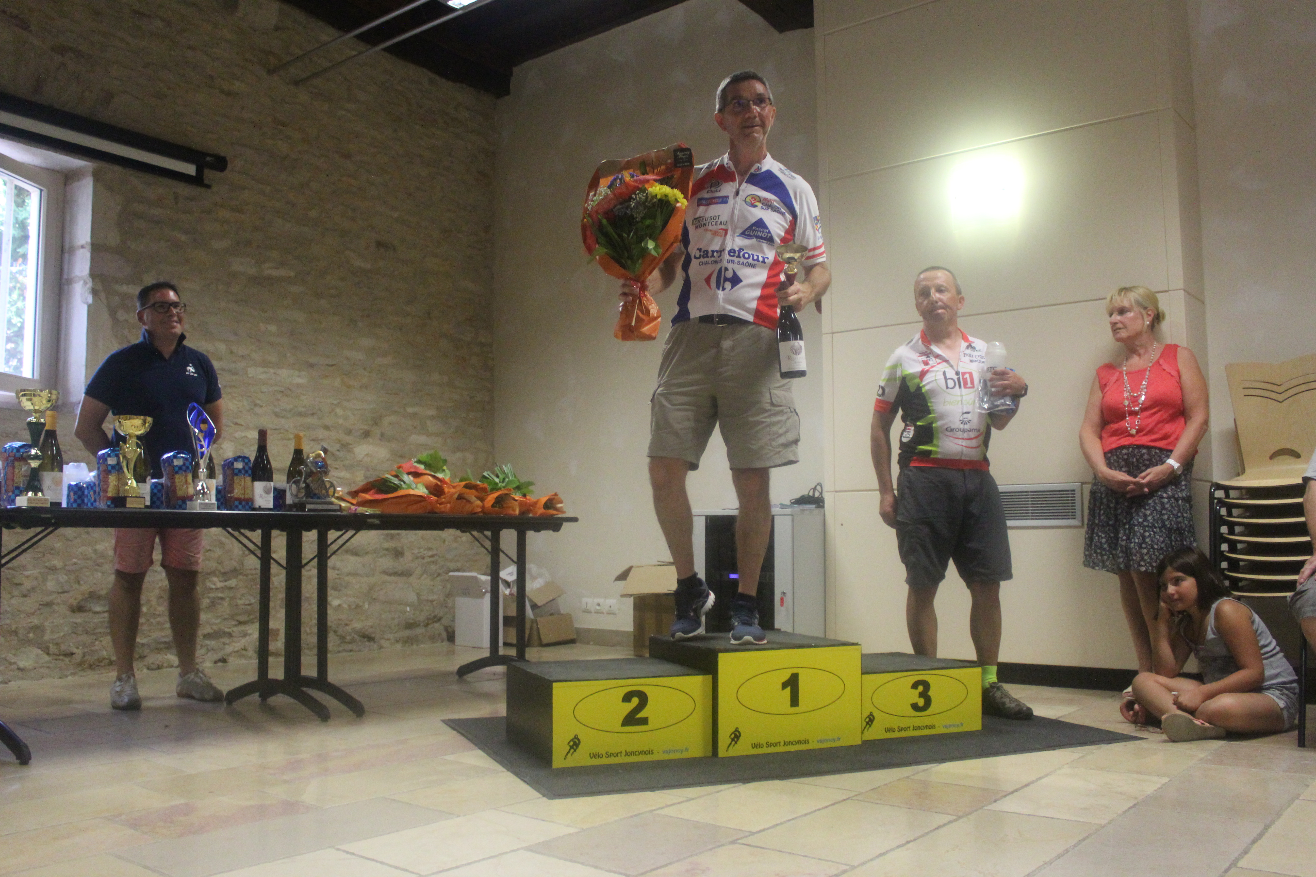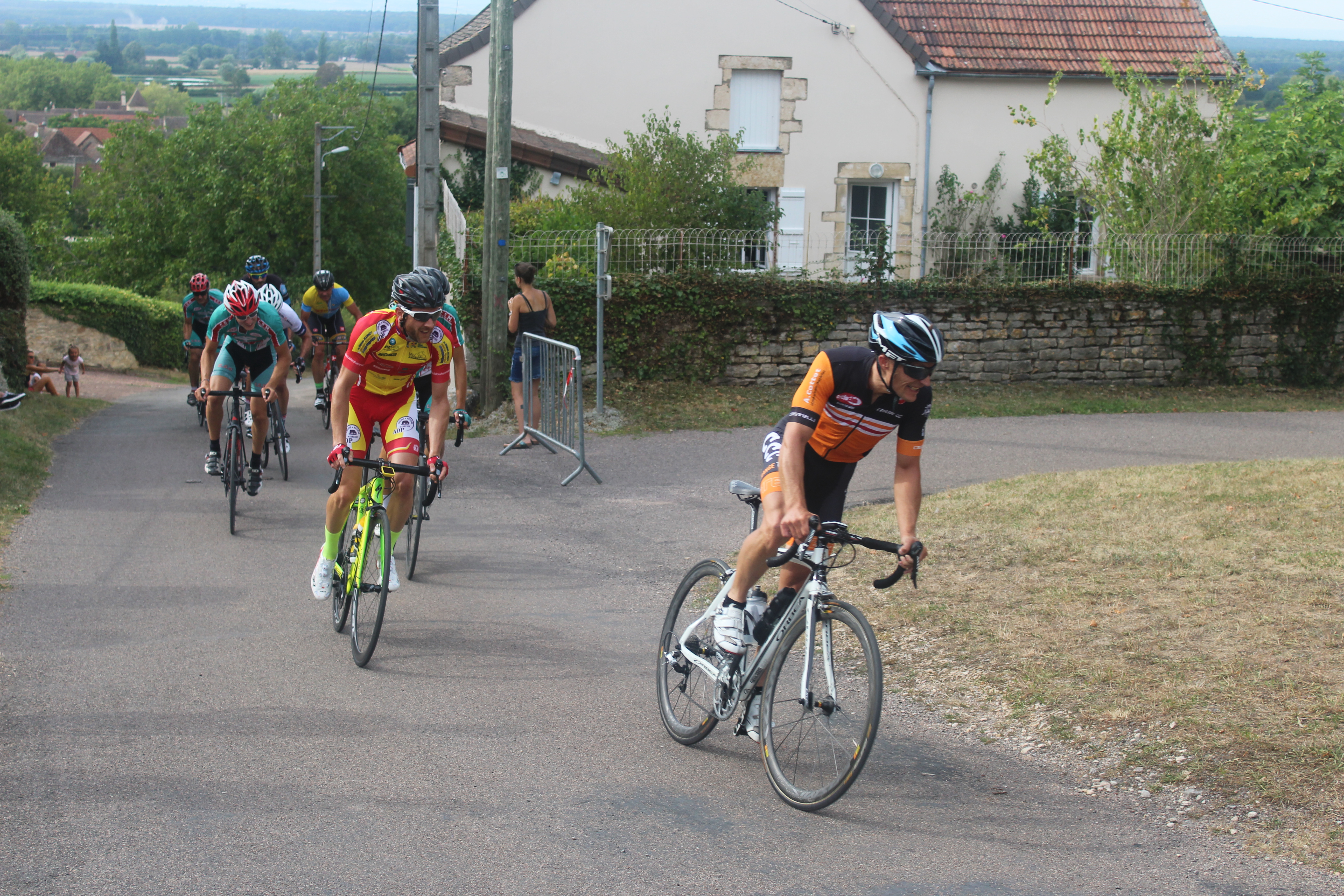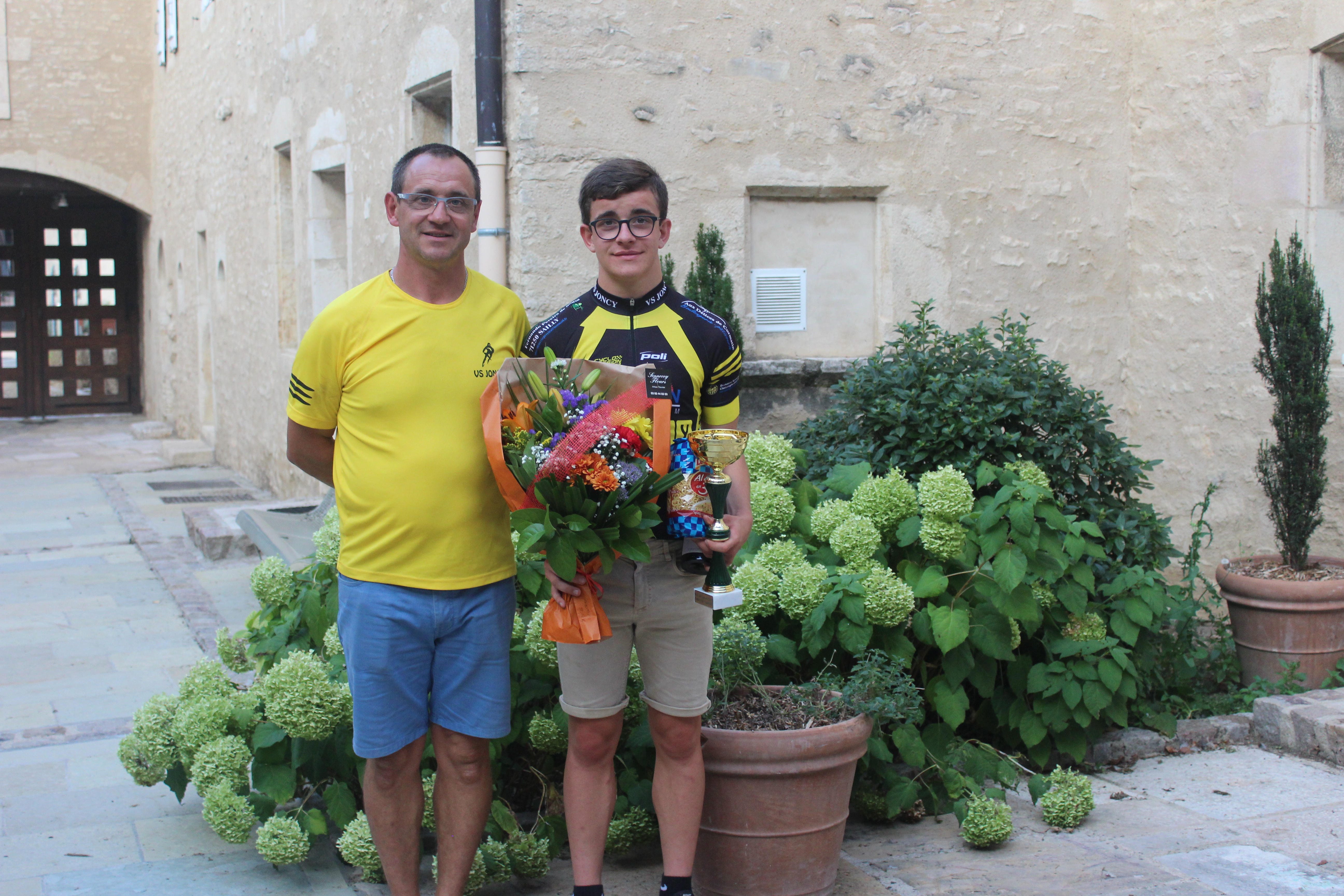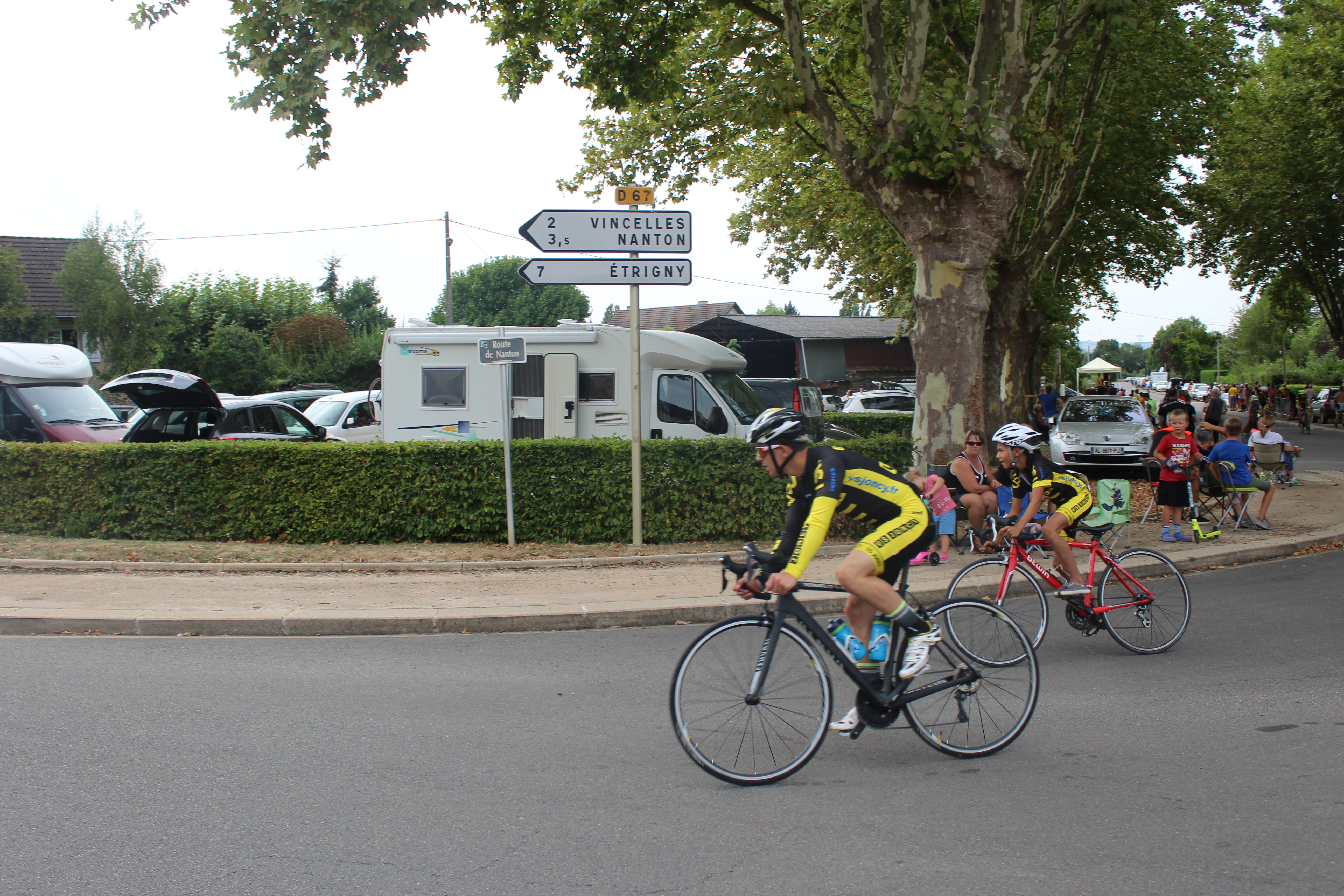 A noter que nos deux vainqueurs du jour ont participé au contre la montre de St Cyr la veille, et finalement, cette ‘balade’ dans la pleine de Saône aura servi à débloquer les organismes et surtout à faire pour nos deux jeunes des chronos de références pour les prochaines saisons. Le club était bien représenté au contre-la-montre de St Cyr avec 10 coureurs et une belle place pour Quentin Olivier en première caté … Quentin semble en grande forme à l’approche des chronos !