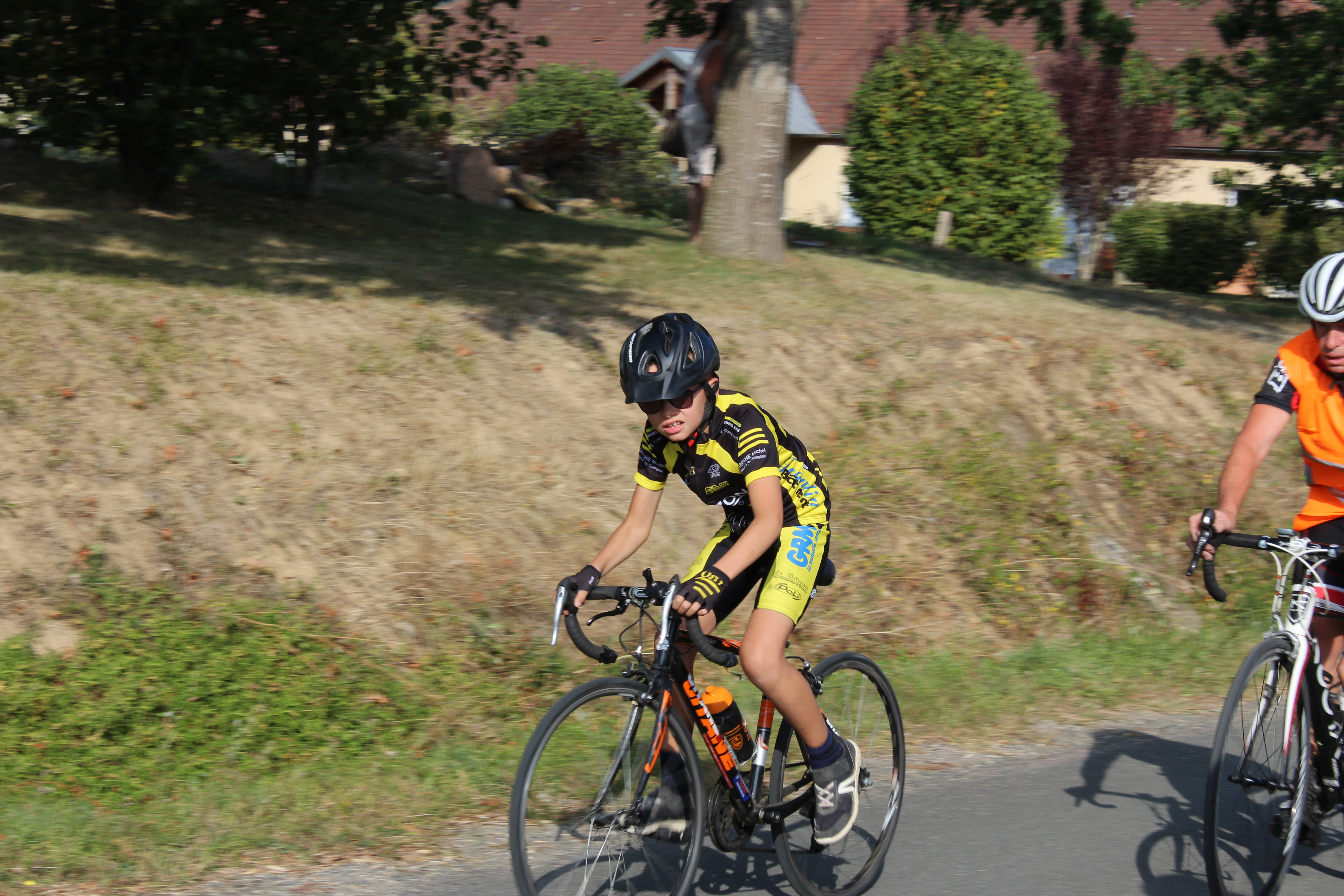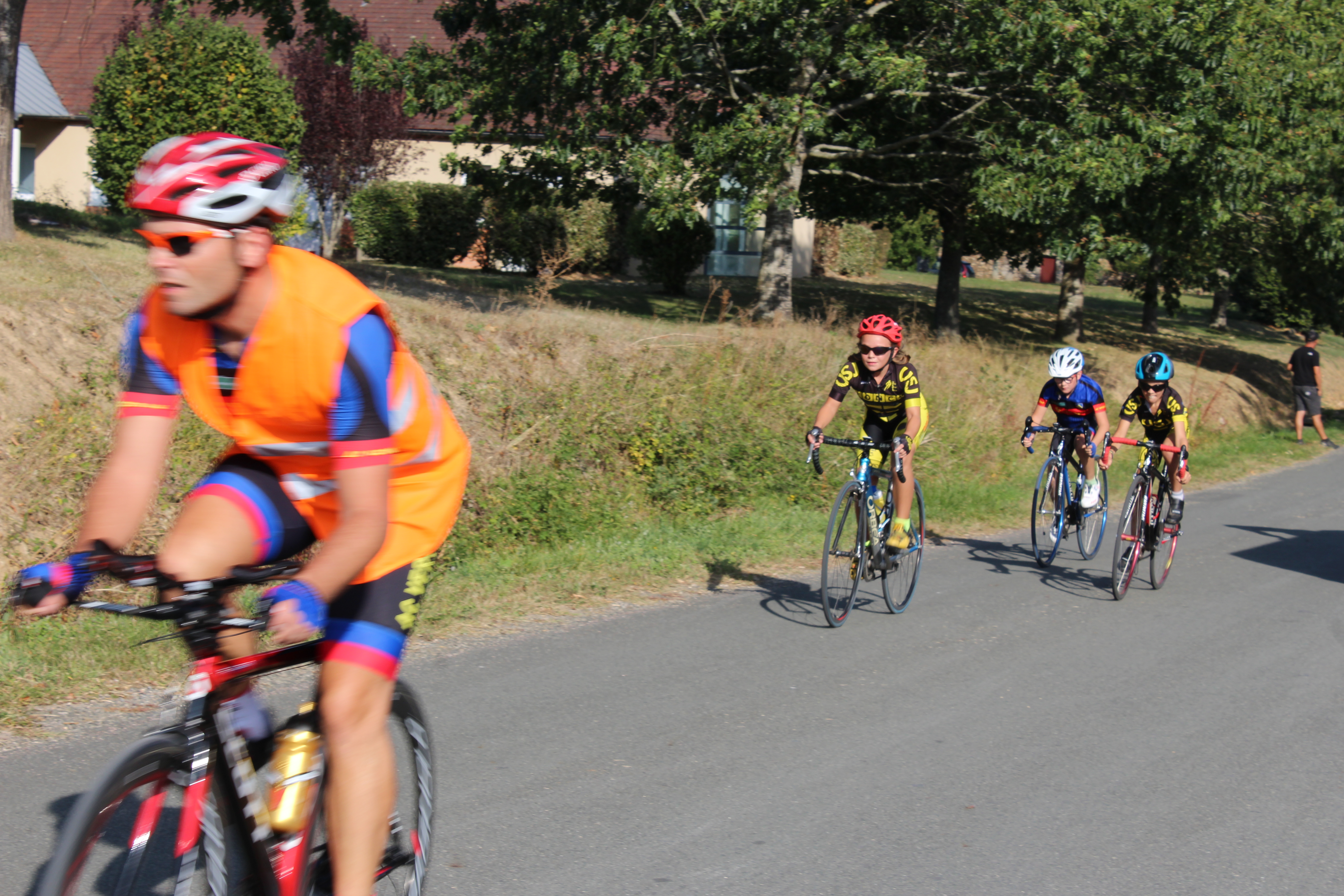 La première à s’élancer est Flavie, elle termine 2éme en un temps de 19’18 à 32km/h de moyenne. Les premiers à ouvrir le bal chez les adultes sont Charlotte, Richard, Joëlle, Susan et Cléa. Charlotte part la première à 13h30 et fait un bon chrono dans sa catégorie avec un temps de 39 min 08 s à 27 km/h de moyenne et se classe 12ème en catégorie 6. Elle se fait doubler par Richard que dans les derniers kilomètres, on remarque ses progrès. Ensuite, c’est au tour de Joëlle de s’élancer à 13h32 et comme d’habitude, elle réalise un bon temps qui est de 36 min 55 s à 28 km/h mais malheureusement , elle loupe la victoire pour 5 secondes et fini 2ème en féminine. Richard s’élance à 13h34, et termine son chrono en 33 min 53 s à 31 km/h de moyenne et se classe 25ème en catégorie 4. Susan s’élance à 13h36 et termine 4ème en féminine avec un temps de 42 min 33 s à 25 km/h de moyenne et Cléa s’élance à 13h38 et elle boucle son chrono en 47 min 22 s à 22 km/h de moyenne et se classe 5ème en féminine.