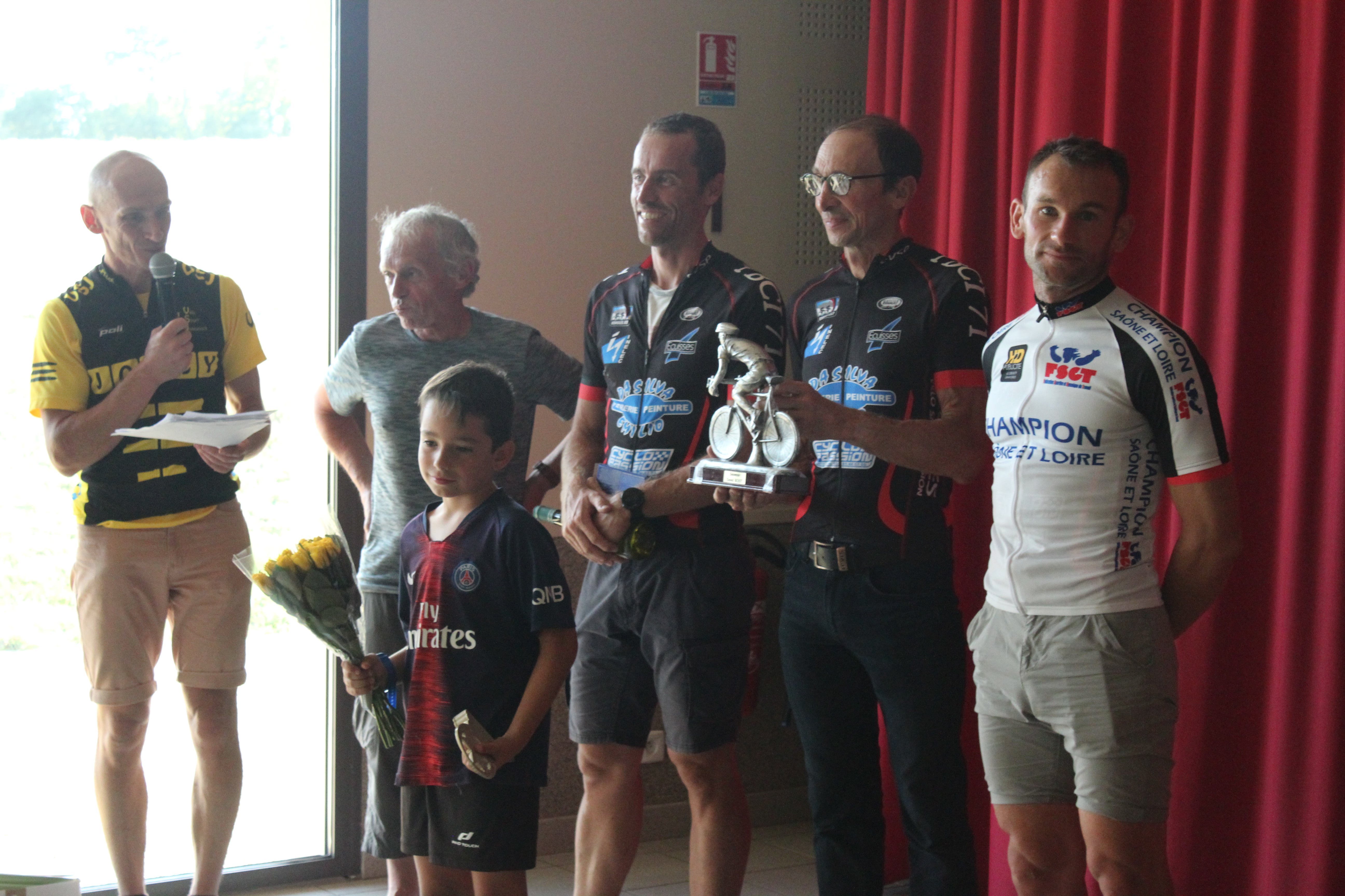En catégorie 3, Emilien montre qu’il est en pleine forme et remporte le chrono et devient champion de Saône-et-Loire de contre-la-montre. Il boucle le parcours en 27 min 45 s à 38 km/h de moyenne.